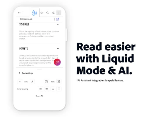 Inteligentni pomoćnik Adobe Acrobat AI Assistant transformira rad s PDF-ovima. Unutar PDF prostora (PDF Spaces), surađujte s više datoteka istovremeno, koristeći AI asistenta za sve vaše dokumente. Postavljajte pitanja glasom ili tekstom, dobivajte citirane odgovore iz grafikona i tablica uz Figures Q&A, te ih lako dijelite. Podrška za glasovne upite omogućuje da se odgovori čitaju naglas. Trenutačno generirajte sažetke iz PDF-ova i kreirajte sadržaj za e-poštu, bilješke ili blogove. Uređujte tekst i slike izravno u PDF-u, ispravljajte pogreške, spajajte i organizirajte datoteke, prepoznajte tekst (OCR) te konvertirajte u i iz različitih formata (Word, Excel, PowerPoint, slike, web stranice). Komprimirajte datoteke i zaštitite ih lozinkom. Slušajte svoje PDF-ove uz funkciju čitanja naglas. Pretplaćivanjem pristupate ovim moćnim značajkama i uživate u punoj snazi Acrobat Readera na svim platformama.