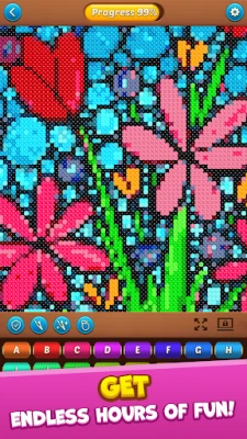 "Cross Stitch: Coloring Art" je obiteljska piksel umjetnost igra gdje bojite po slovima. Ova jedinstvena varijanta bojanke pomaže razvoju koncentracije, pažnje i kreativnosti. Uživajte u stvaranju prekrasnih radova i testirajte svoju domišljatost kroz zanimljivo bojanje.