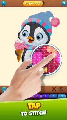 Iskustvo vezenja obogaćeno je i sofisticiranim alatima koji olakšavaju svaki korak vašeg kreativnog procesa. Za istinski personaliziranu kreaciju, imate mogućnost uvoza vlastitih fotografija i pretvaranja ih u jedinstvene uzorke veza križićem. Podijelite svoja gotova umjetnička djela s prijateljima i cijelim svijetom, pokazujući svoj talent i predanost. Sve je upotpunjeno umirujućom pozadinskom glazbom i zvukovima, te simpatičnim sučeljem koje će vas dodatno opustiti dok stvarate.