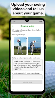 Korištenje Swingtweaks aplikacije je jednostavno i intuitivno. Snimite svoj zamah iz dva različita kuta, dajući nam cjelovitu sliku vaše tehnike. Potom, podijelite s nama specifičnosti svoje igre, izazove s kojima se susrećete i ciljeve koje želite postići. Vaša snimka i detaljan opis bit će proslijeđeni kvalificiranom i strastvenom PGA profesionalcu. On će pažljivo pregledati vaš zamah i dostaviti vam izvanrednu video analizu, obogaćenu stručnim komentarima, označenim ključnim točkama i promišljenim objašnjenjima. Ova će vam analiza rasvijetliti uzroke vaših poteškoća, objasniti temeljne koncepte golf zamaha te ponuditi precizna rješenja za ispravljanje specifičnih problema.